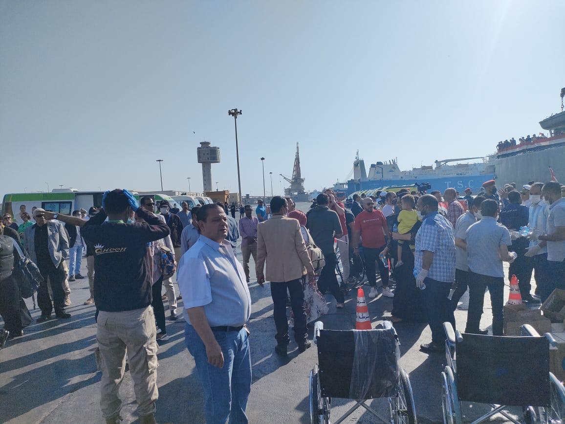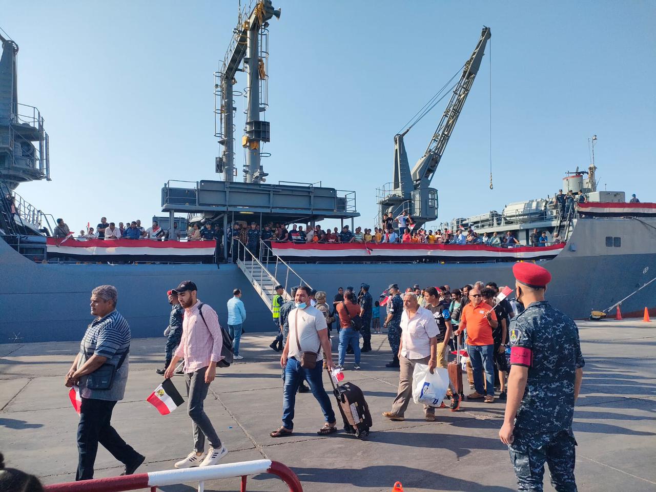 زين ميناء سفاجا البحري بالبحر الأحمر، صباح اليوم الثلاثاء، بأعلام مصر والأغاني الوطنية لاستقبال المصريين والأجانب القادمين من السودان.