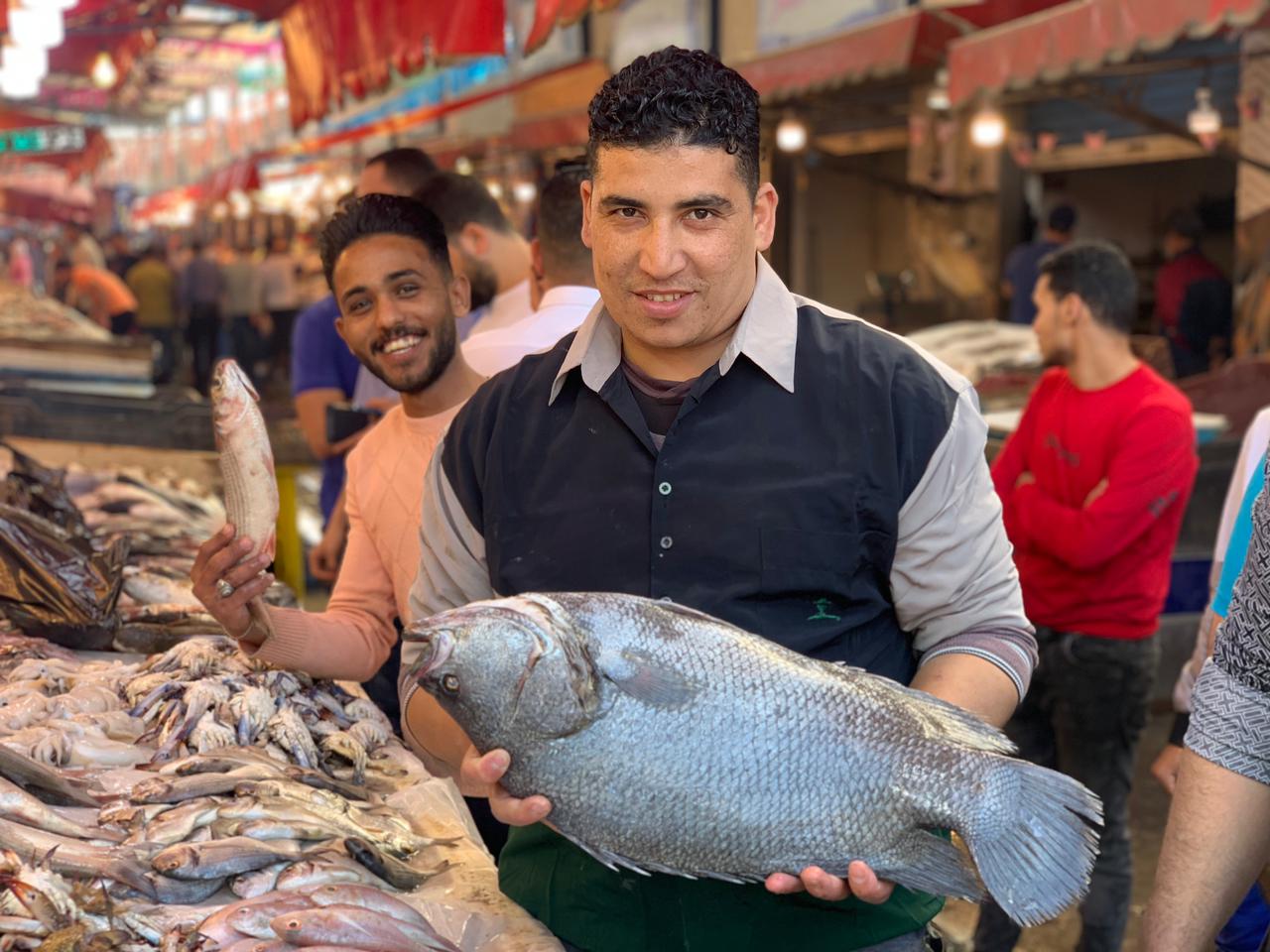 عرض أحد البائعين بسوق الأسماك المطور بـ محافظة بورسعيد، سمكة من نوع بلطي تزن أكثر من 3 كيلو، مما جعلها تثير الدهشة لدى المواطنين.