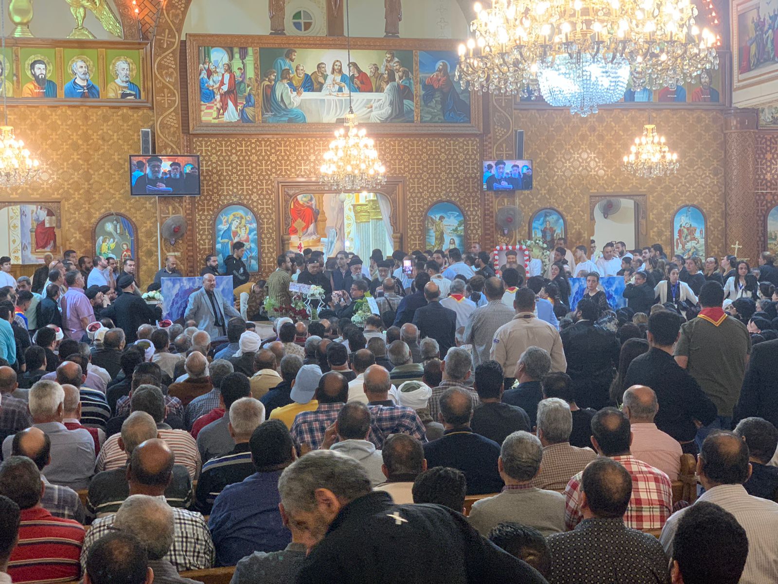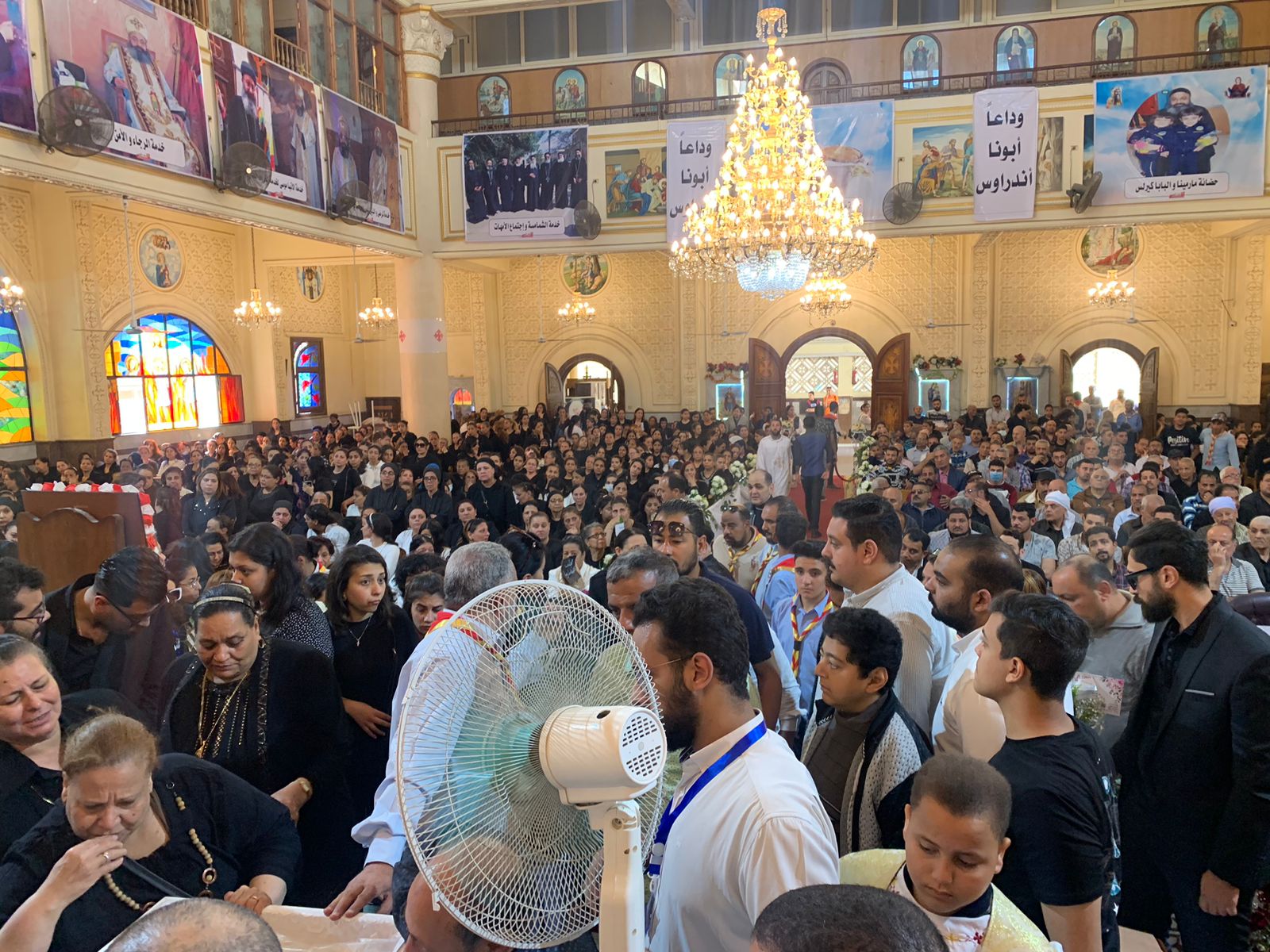وحضر داخل قاعة الكنيسة والمخصصة للصلاة الأباء والكهنة والسيدات والرجال والأطفال في مشهد مهيب، كما تواجد جثمان الراحل الأب أندراوس دنيال في نعش أبيض، وحرص شعب الكنيسة على وداع الأب وتقبيله في آخر مرة يرونه خلالها.