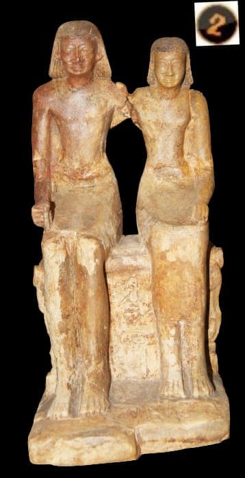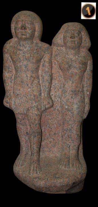 - تمثال واقف لرجل وزوجته، صُنع من الجرانيت الوردي، ويعود إلى الدولة القديمة.
