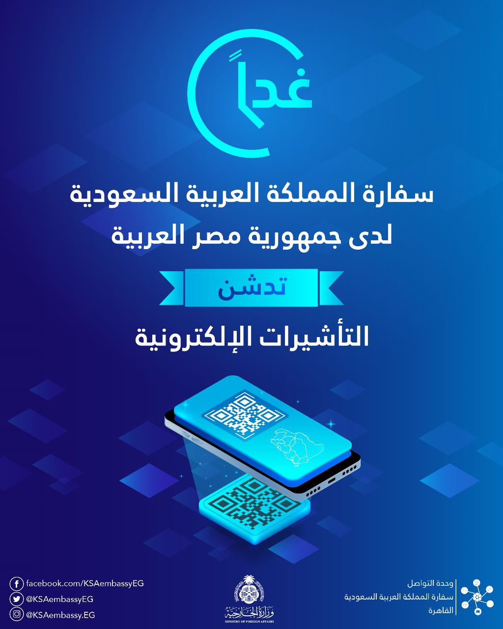 وكانت وزارة الخارجية السعودية أعلنت في وقت سابق، إلغاء لاصق التأشيرة على جواز سفر المستفيد والتحول إلى التأشيرة الإلكترونية وقراءة بياناتها عبر رمز الاستجابة السريعة (QR).