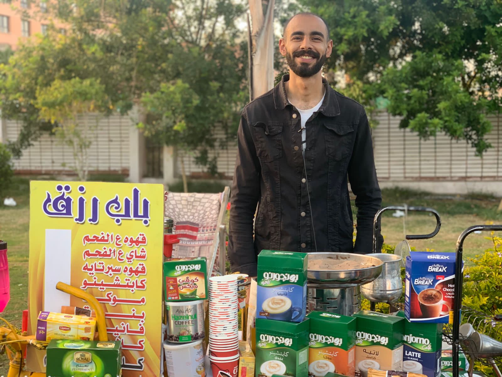 باب رزق.. حامل بكالوريوس يعمل على عجلة ببورسعيد: بعمل أحلى كوباية قهوة | فيديو وصور