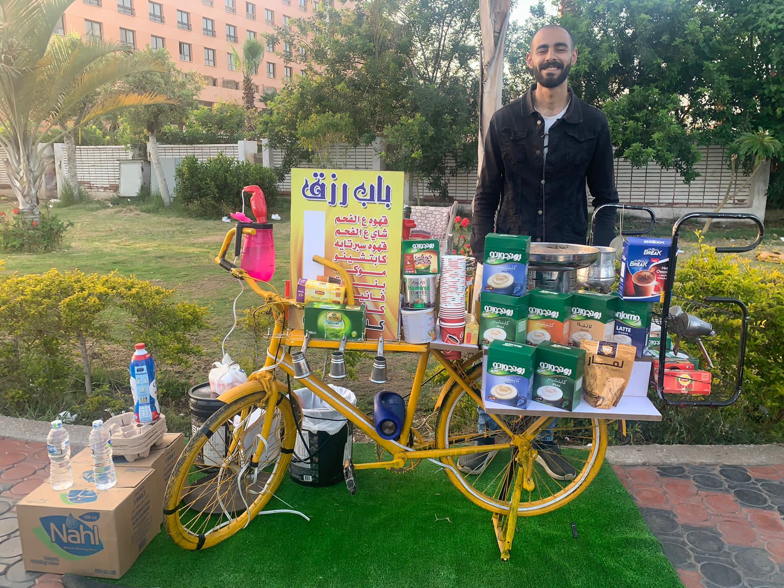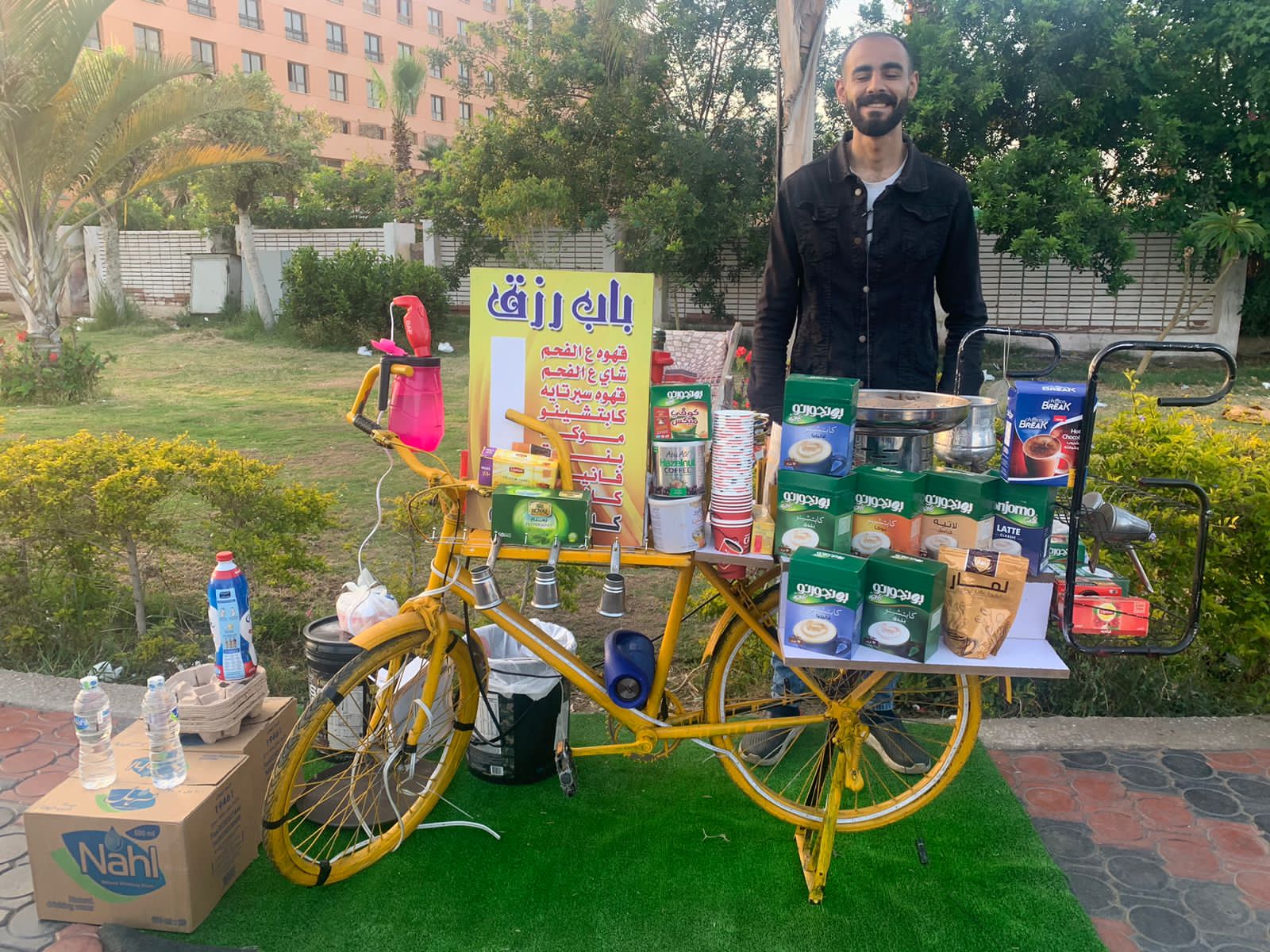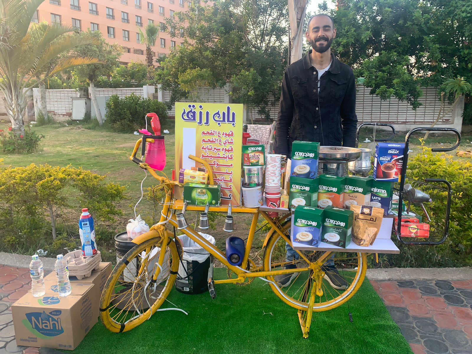 يقف الشاب البورسعيدي أحمد على رصيف شارع طرح البحر بـ محافظة بورسعيد، يبحث عن لقمة عيش من الحلال، على دراجة بسيطة، يقدم من خلالها المشروبات الساخنة لرواد الشارع والمارة.