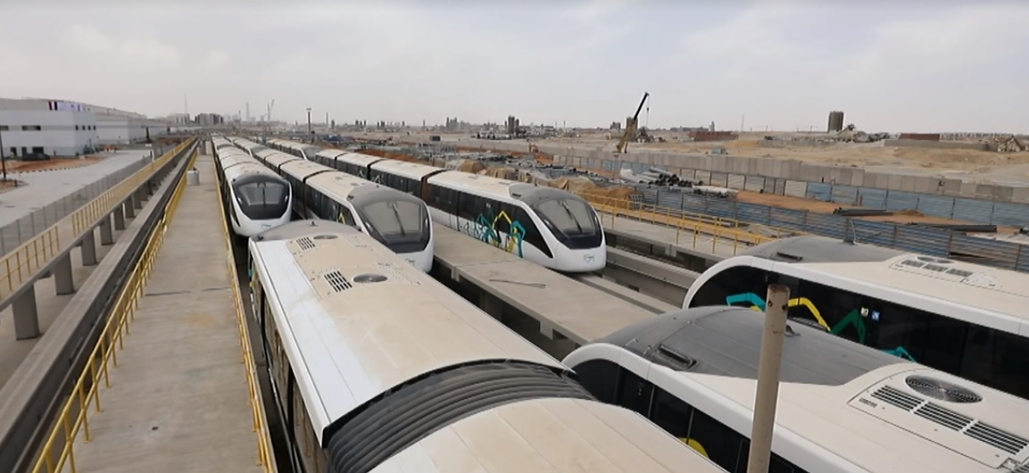 عرض اصطفاف قطارات المونوريل التي تربط العاصمة الإدارية الجديدة بمدينة القاهرة