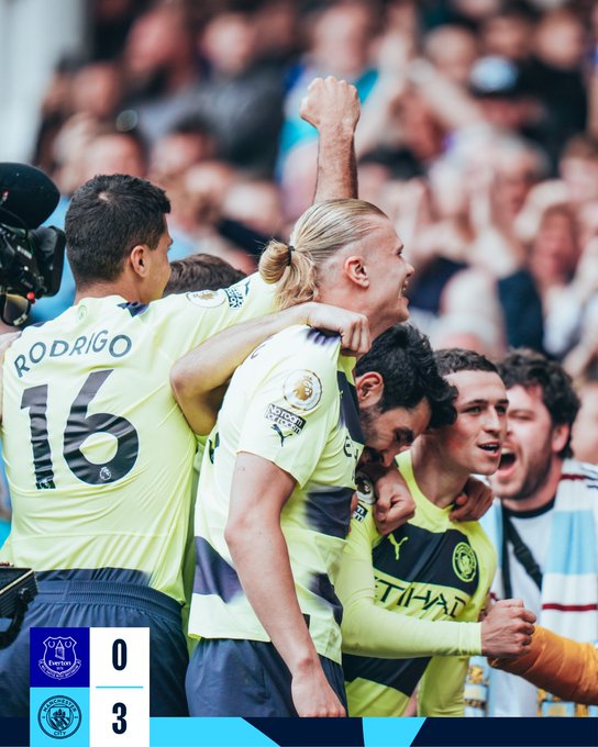 وبهذه النتيجة يصل رصيد فريق مانشستر سيتي إلى 85 نقطة ليظل في صدارة جدول ترتيب مسابقة الدوري الإنجليزي الممتاز، بينما يقف رصيد إيفرتون عند 32 نقطة في المركز السابع عشر.