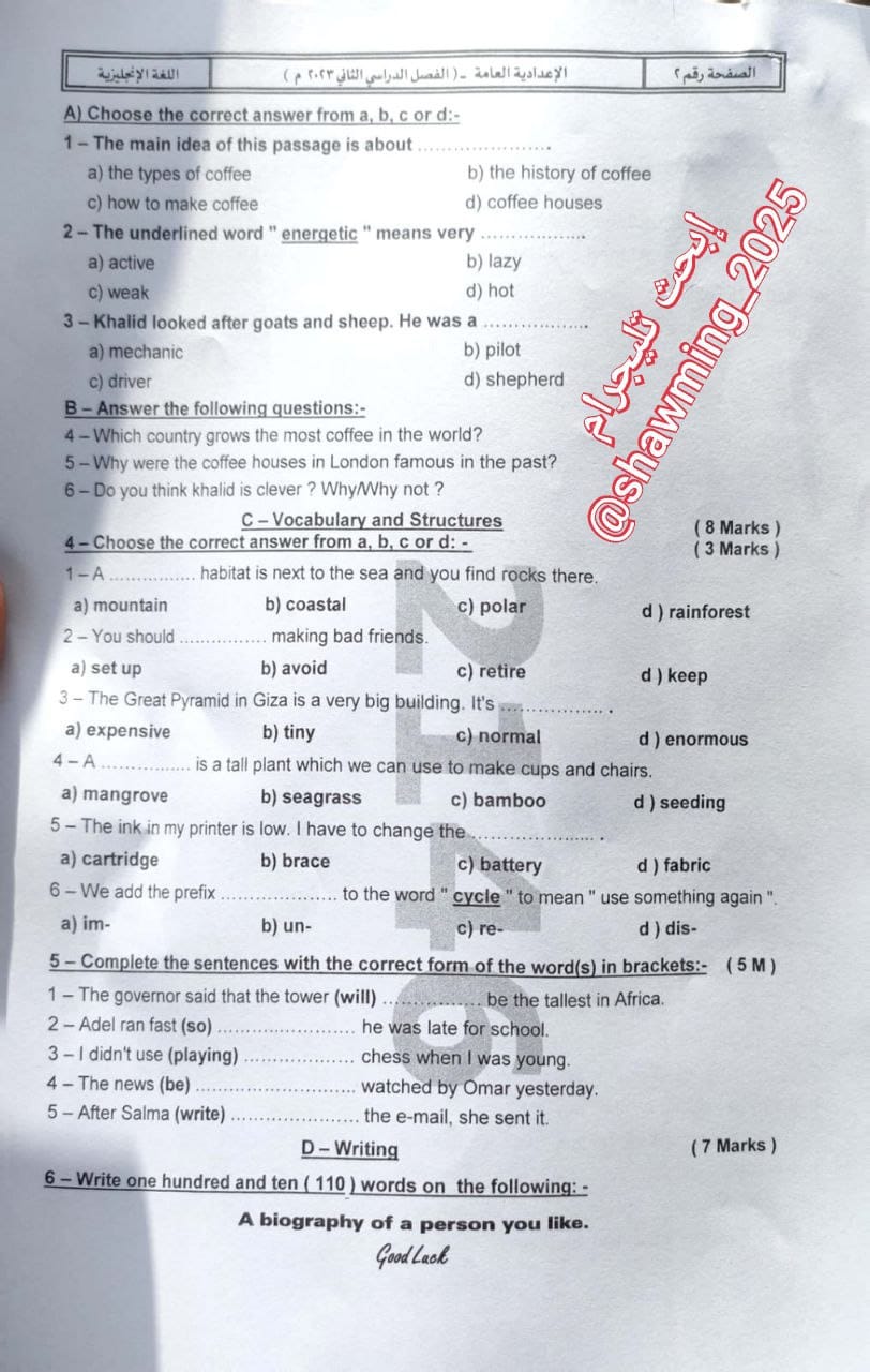 شاومينج يتداول صورًا مزعومة لأسئلة امتحان اللغة الأجنبية للشهادة الإعدادية بسوهاج.. والتعليم تعلق