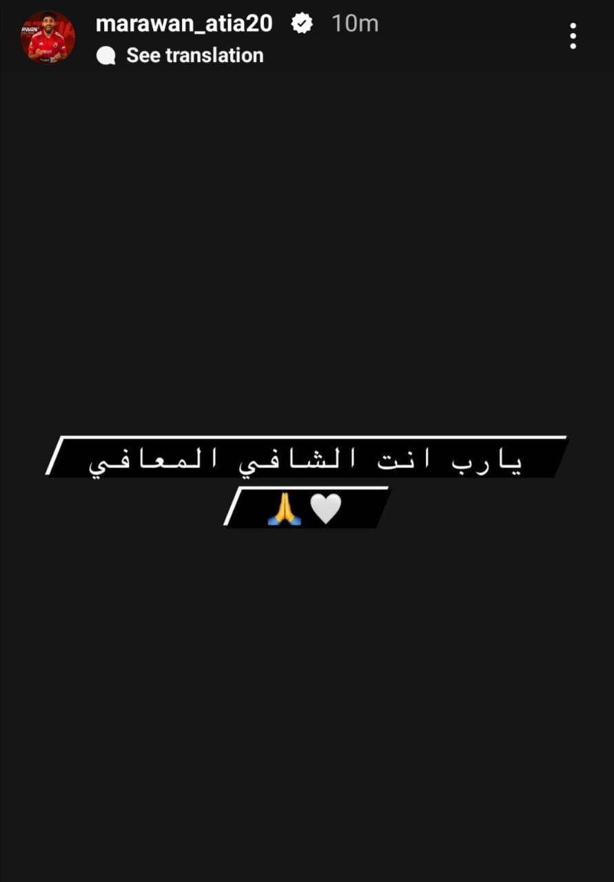 ونشر مروان عطية في ساعة مبكرة من صباح اليوم الثلاثاء عبر حسابه على موقع "إنستجرام": "يارب أنت الشافي المعافي".