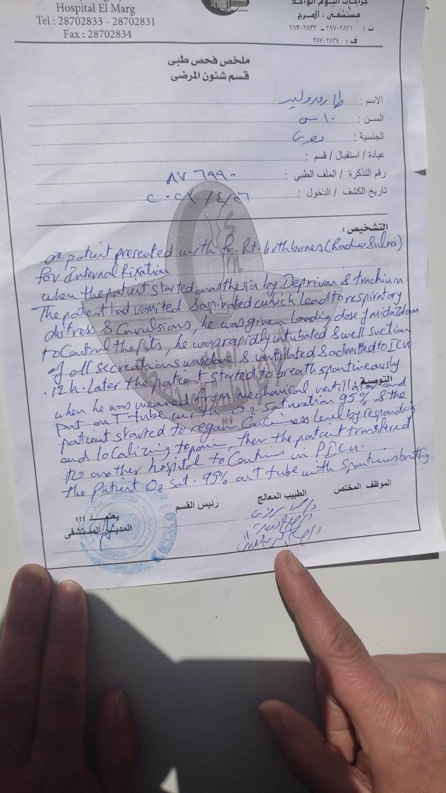 طارق حاليًا في غرفة العناية المركزة، بين يدي الله، وهي العبارة المتكررة، التي يقولها الأطباء للأسرة المنهكة، لأن الطفل بعد تعرضه لإهمال طبي، حتى وإن تمت إفاقته من الغيبوبة، ستبدأ رحلة معاناته مع نتائج نقص الأكسجين في المخ، والتي تسبب إما شللًا كاملًا أو جزئيًا، أو ضمور بالعضلات.