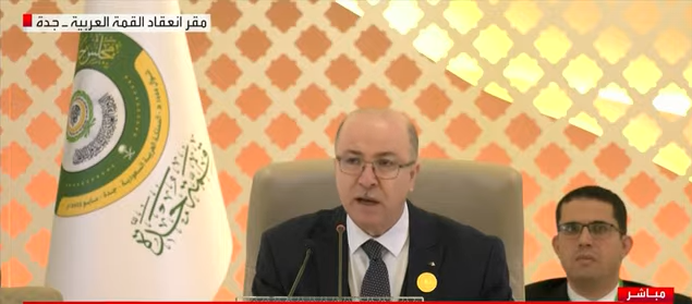 سلّم أيمن بن عبد الرحمن، الوزير الأول الجزائري، رئاسة القمة العربية إلى الأمير محمد بن سلمان، ولي عهد المملكة العربية السعودية، وذلك في إطار انعقاد القمة العربية الـ 32 في جدة.