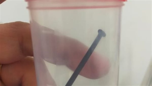 وكشفت الفحوصات التي أجراها الأطباء للطفل، عن توقف جسم غريب معدني مسمار 10 سم داخل الإثنى عشر وجدار المعده للطفل إثر ابتلاعه له.