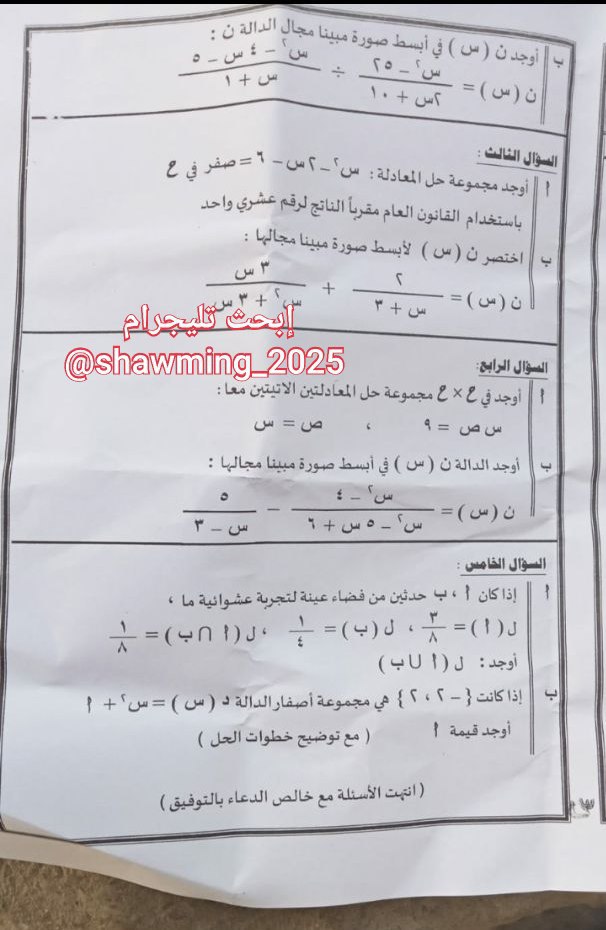 شاومينج يتداول صورًا مزعومة لأسئلة امتحان الجبر للشهادة الإعدادية بالقاهرة.. ومصدر بالتعليم يعلق