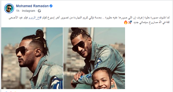 ونشر محمد رمضان صورة تجمعه بالطفل منذر مهران على حسابه الرسمي بـ فيس بوك، معلقًا: لما تشوف صورة حلوة اعرف إن اللي صورها عنيه حلووة.. بعدسة نيللي كريم النهاردة من تصوير آخر أسبوع لفيلم ع الزيرو فيلم عيد الأضحى، ثقة في الله صاروخ سينمائي جديد.