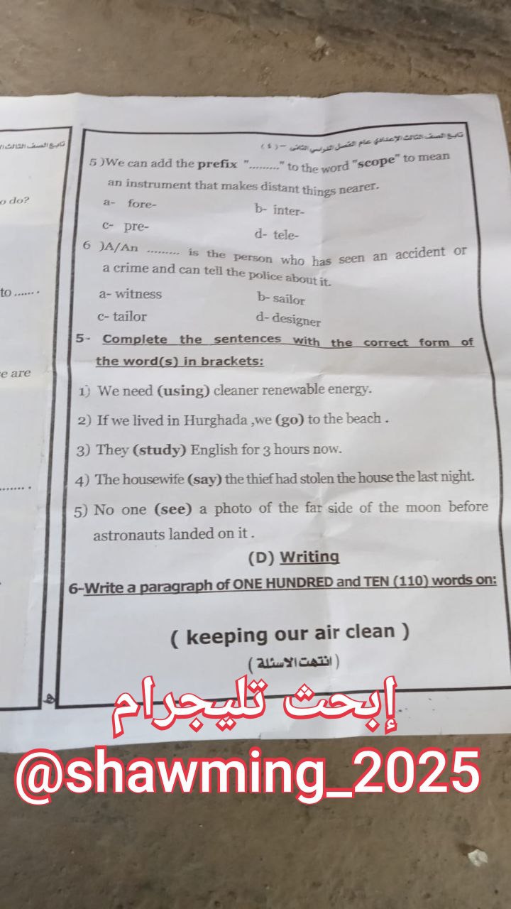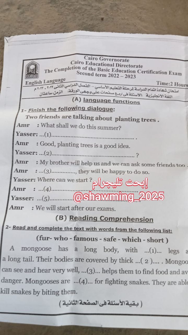 تداولت جروبات الغش باسم شاومينج عبر تطبيق تليجرام، اليوم الأحد، صورًا مزعومة لأسئلة امتحان اللغة الإنجليزية لطلاب الشهادة الإعدادية 2023 في محافظة القاهرة.