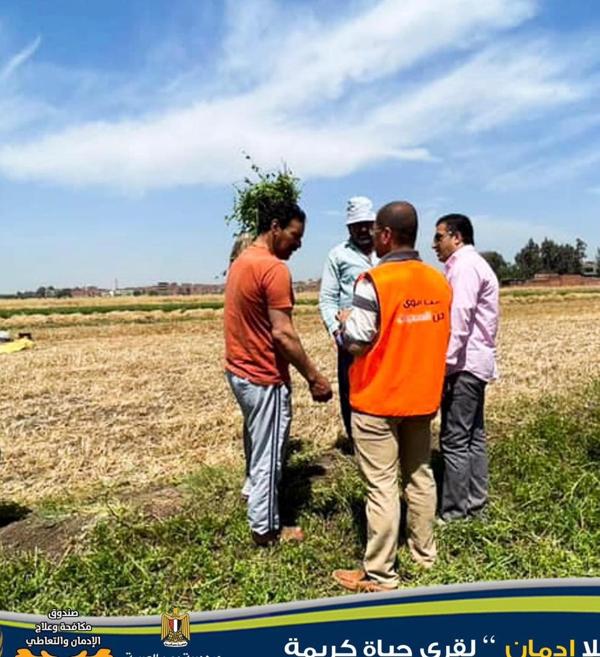مكافحة الإدمان يصل الأراضي الزراعية بالقرى لتوعية العمال بأضرار تعاطي المخدرات | صور