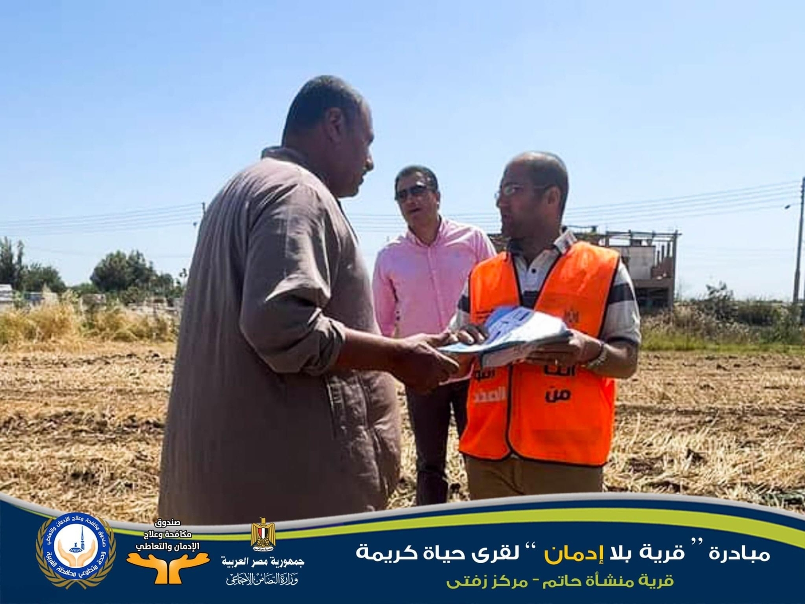 أطلق صندوق مكافحة وعلاج الإدمان والتعاطي، برئاسة نيفين القباج، وزيرة التضامن الاجتماعي ورئيس مجلس إدارة الصندوق، مبادرة لتوعية العمال في الأراضي الزراعية في العديد من القرى الريفية بمخاطر الإدمان، وآليات الاكتشاف المبكر وكيفية التعامل مع الحالات المرضية والتواصل مع الخط الساخن لعلاج الإدمان 16023.