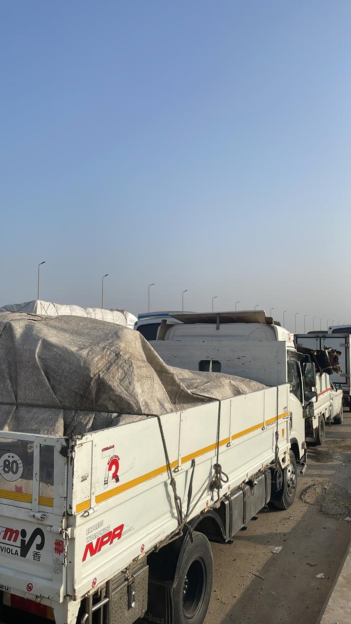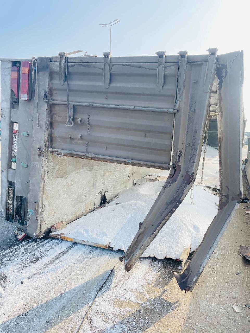 تكدس مروري أعلى الدائري اتجاه السلام بسبب انقلاب سيارة نقل | صور