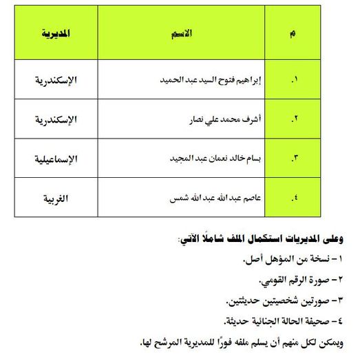 أسماء من لهم حق المقابلة الشفوية من المتقدمين للعمل بديوان عام الوزارة