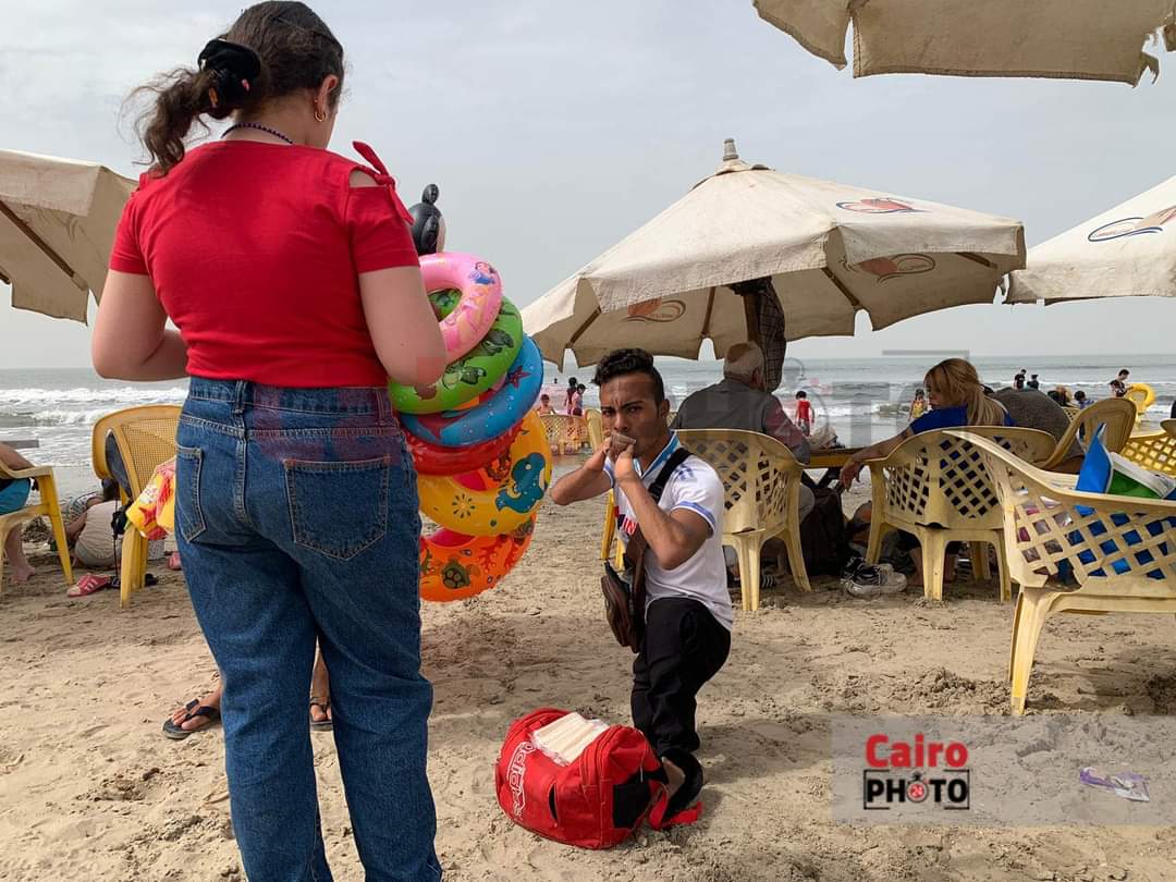 طالب كلية تجارة من ذوي الهمم يبيع العسلية علي شاطئ بورسعيد