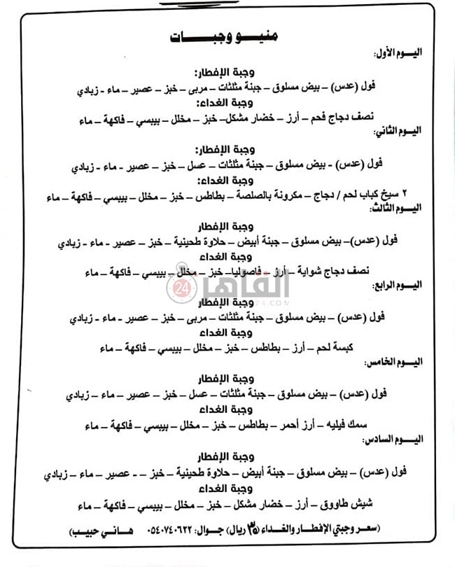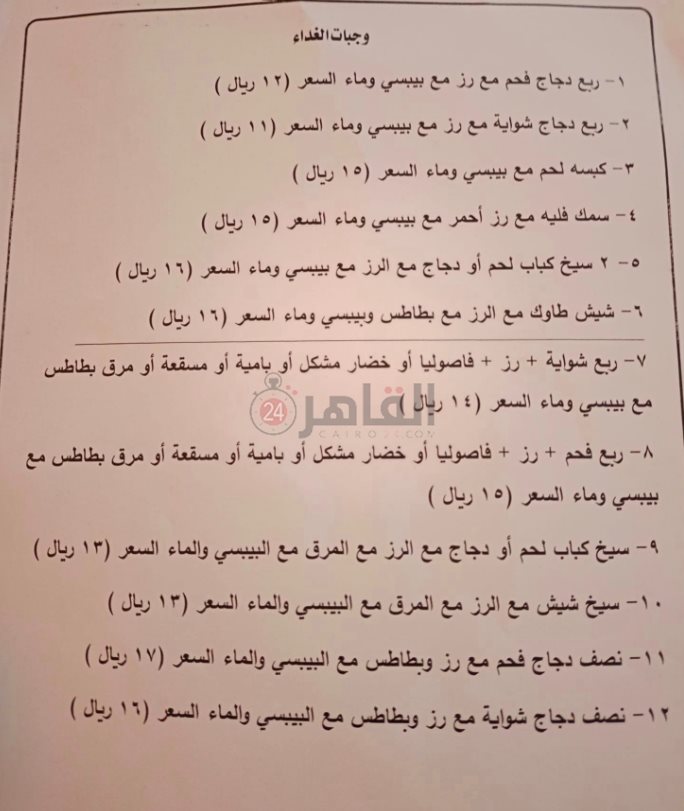 وحصل القاهرة 24 على صور كم أسعار الوجبات المختلفة مثل الفطار والغداء كالتالي: