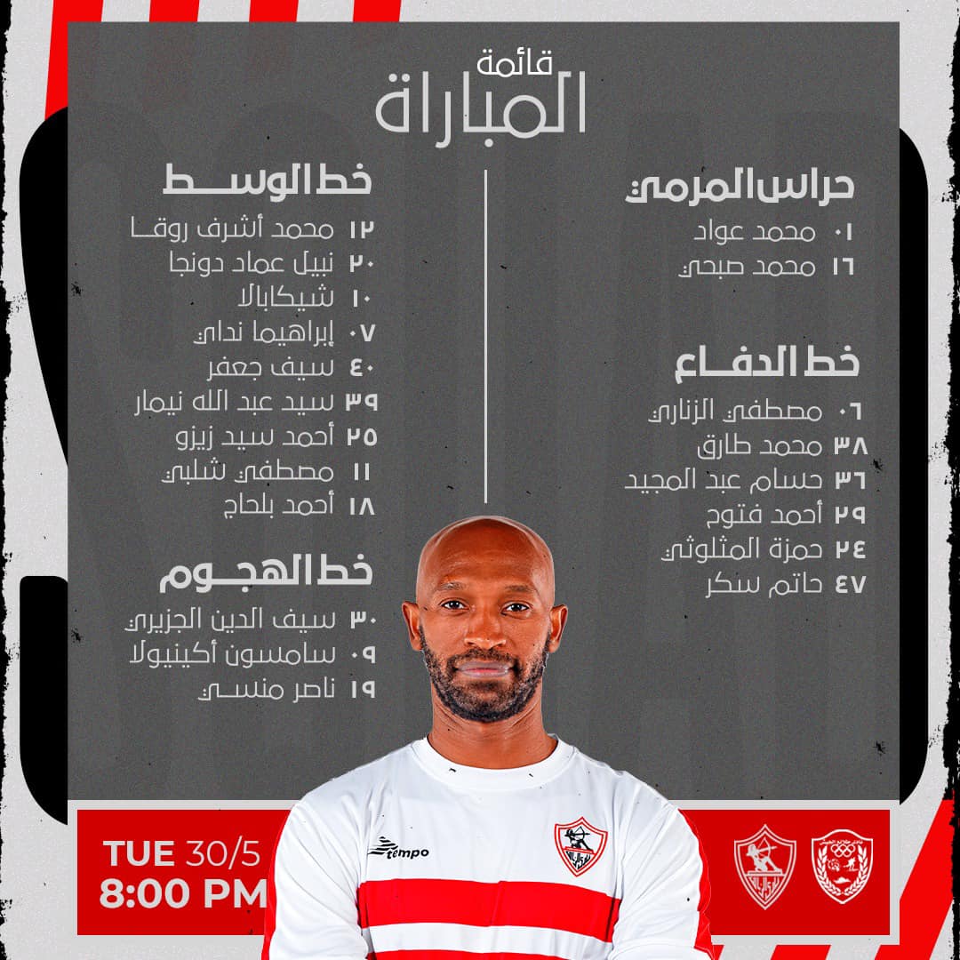 - خط الوسط: علي حمدي، فريد شوقي، إسلام محارب، محمد شحاتة، أحمد أيمن منصور.