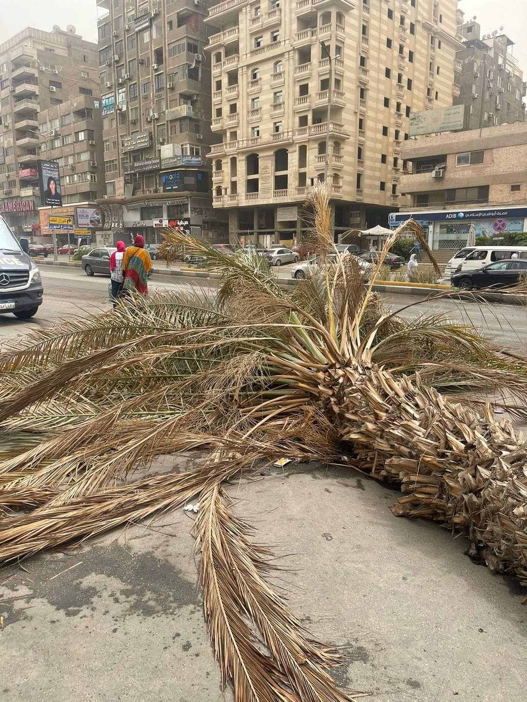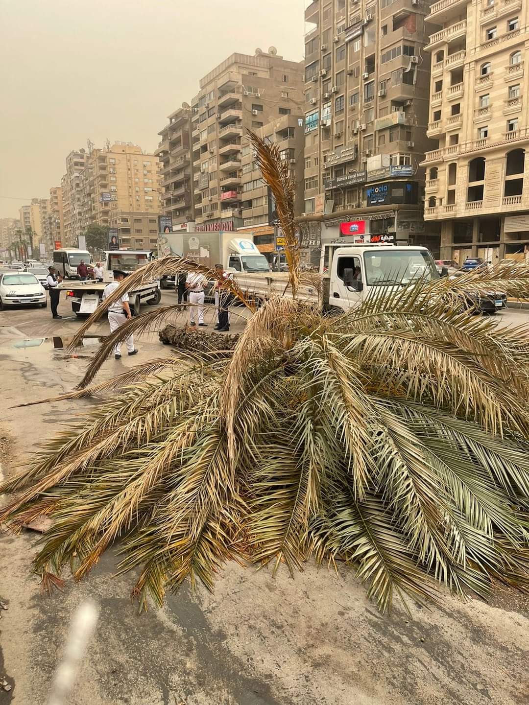 سقوط نخلة بشارع مكرم عبيد بمدينة نصر بسبب الطقس السيئ
