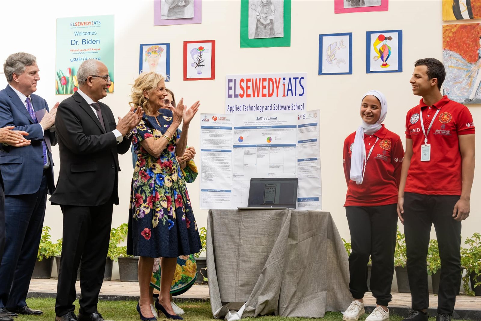 محتضنة الطلاب.. جيل بايدن في زيارة لإحدى مدارس التكنولوجيا التطبيقية: هؤلاء حاضر ومستقبل القاهرة| صور