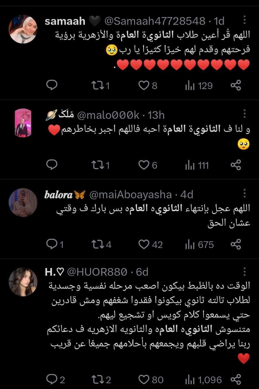 ربنا يراضي قلوبهم.. السوشيال ميديا تتحول لساحة دعوات لطلاب الثانوية العامة