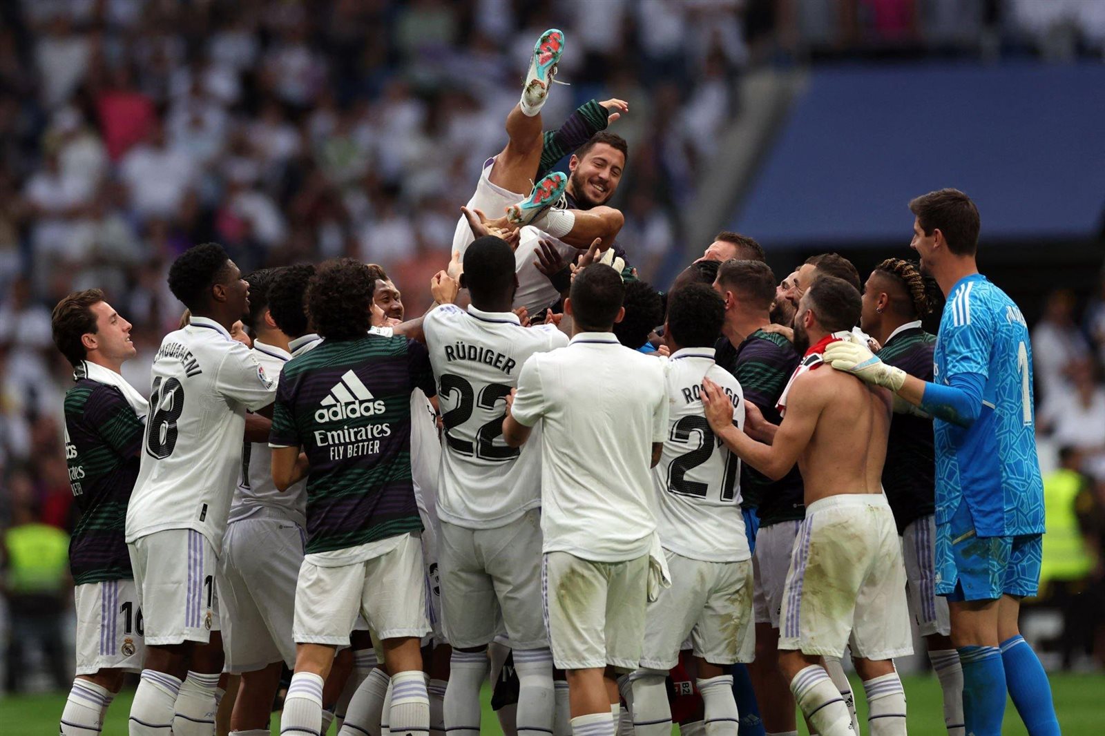 ودع لاعبو ريال مدريد، اليوم الأحد 6 يونيو 2023، الراحلين عن النادي بعد مباراة فريقهم أمام فريق أتلتيك بيلباو التي أقيمت في الجولة الأخيرة بمسابقة الدوري الإسباني.