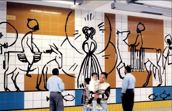 كل تلك الرسوم التي صممها الفنان التشكيلي، نُفذت بطريقة صعبة -حسبما وصف رضا- باستخدام السيراميك المُقطع، حتى تكون الجدارية فنية متميزة، تربط المحطة بالبيئة المحيطة بها.