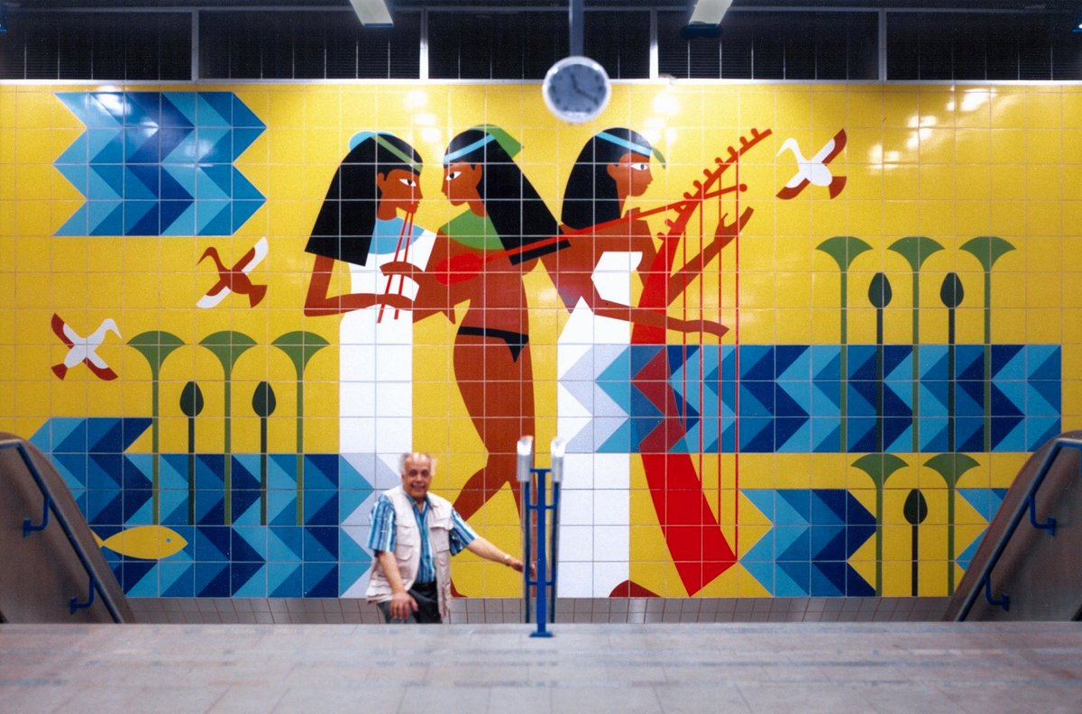 وسط الزحام اليومي وعجلة كل منا في محطات مترو الأنفاق سعيا وراء رزقه، ربما لا يلمح كثيرون الجداريات المرسومة بحرفية ومهارة شديدة على كل محطة، بل قد يظن البعض لوهلة أنها مجرد رسومات عابرة منقوشة لإظهار موهبة الفنان على الحائط، ولكن بنظرة واقعية يدعمها آراء ذوي الخبرة والتخصص نجد انها فن مصري أصيل، حيث تحمل كل جدارية في طياتها قصة وحكاية تتعلق باسم المحطة والمنطقة من حولها، والتي استمر في رسمها الفنان التشكيلي سامي رافع على مدار 7 سنوات كاملة.