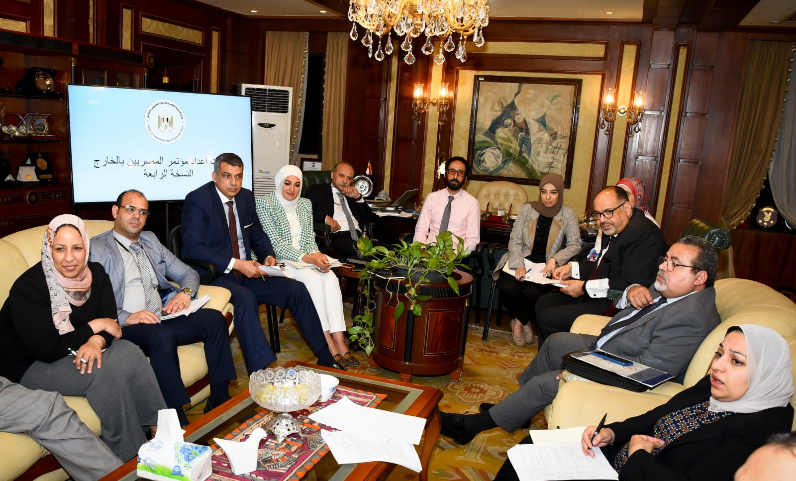 عقدت السفيرة سها جندي، وزيرة الدولة للهجرة وشئون المصريين بالخارج اجتماعا تحضيريا لمناقشة أبرز محاور المؤتمر وموضوعات الجلسات وذلك في إطار الاستعدادات للنسخة الرابعة من مؤتمر المصريين بالخارج، جاء الاجتماع بحضور كل من الدكتور صابر سليمان، مساعد وزيرة الهجرة للتطوير المؤسسي وشئون مكتب الوزيرة، واللواء محمد برغوت، مساعد الوزير للمراسم، والأستاذ عماد سوريال، مساعد الوزيرة للشئون المالية والإدارية، ومستشاري ومعاوني الوزير وقيادات الوزارة.