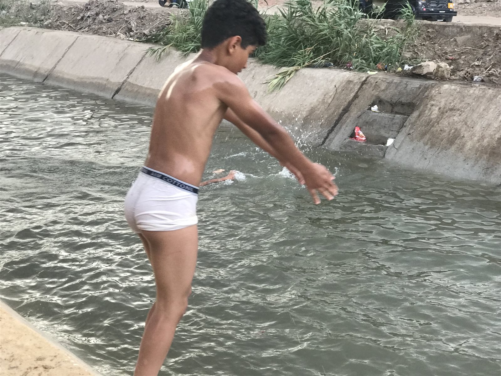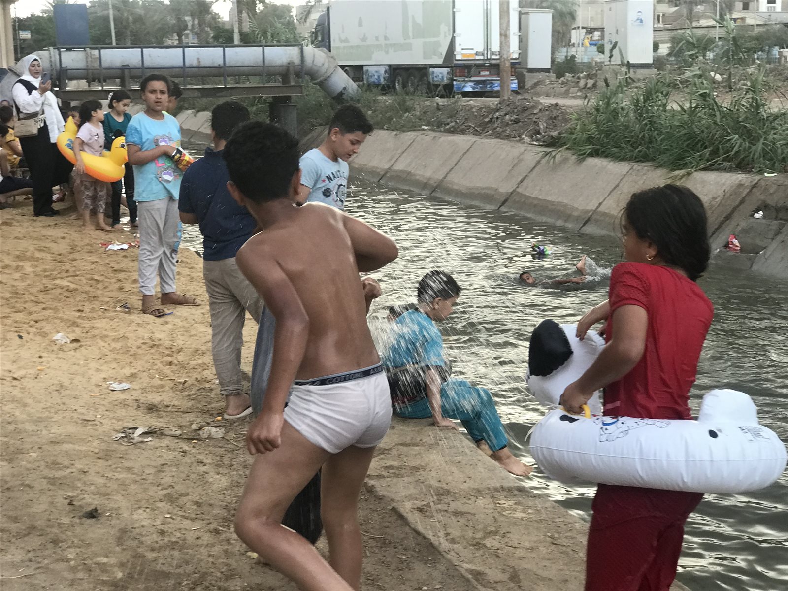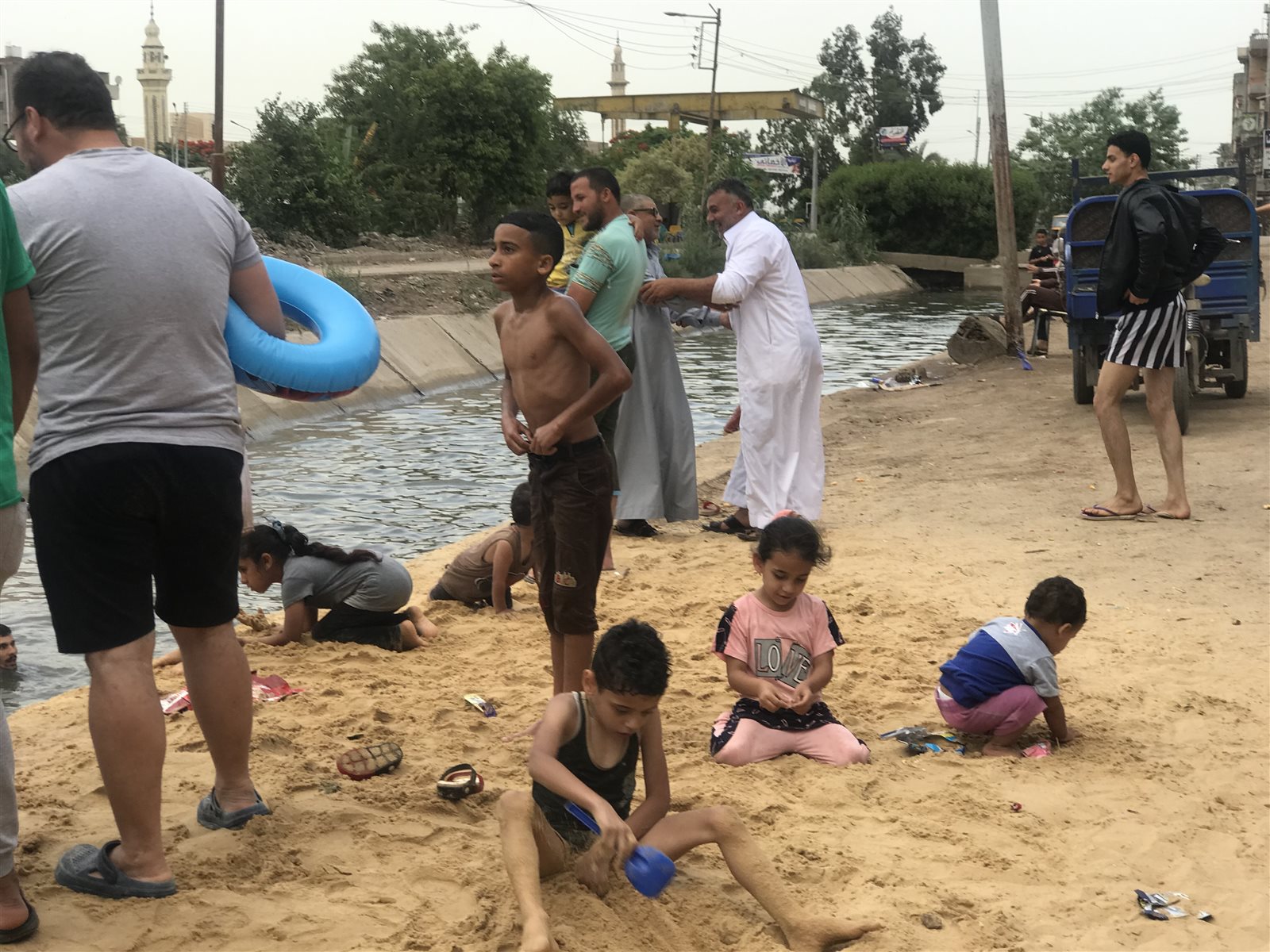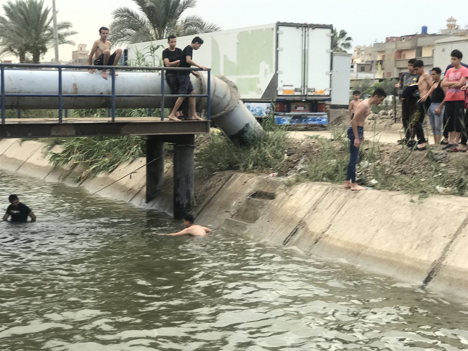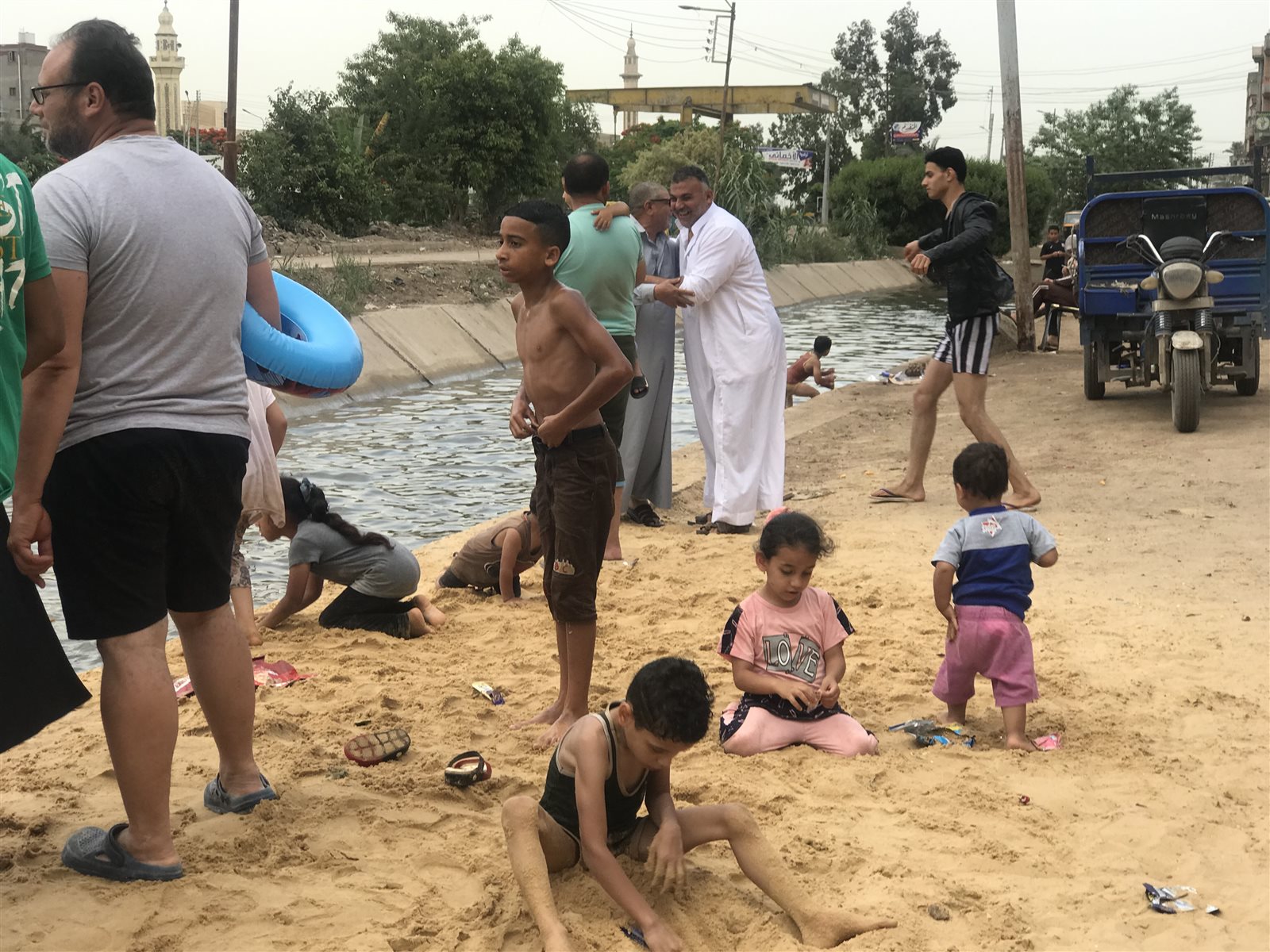 لجأ أطفال وشباب قرية ميت الخولي التابعة لمركز منية النصر في محافظة الدقهلية، وسط حالة من الفرح، إلى جانبي الترعة المُبطنة، يقضون عليها أوقاتهم للسباحة واللهو على الرمال التي وضعها أهالي القرية.