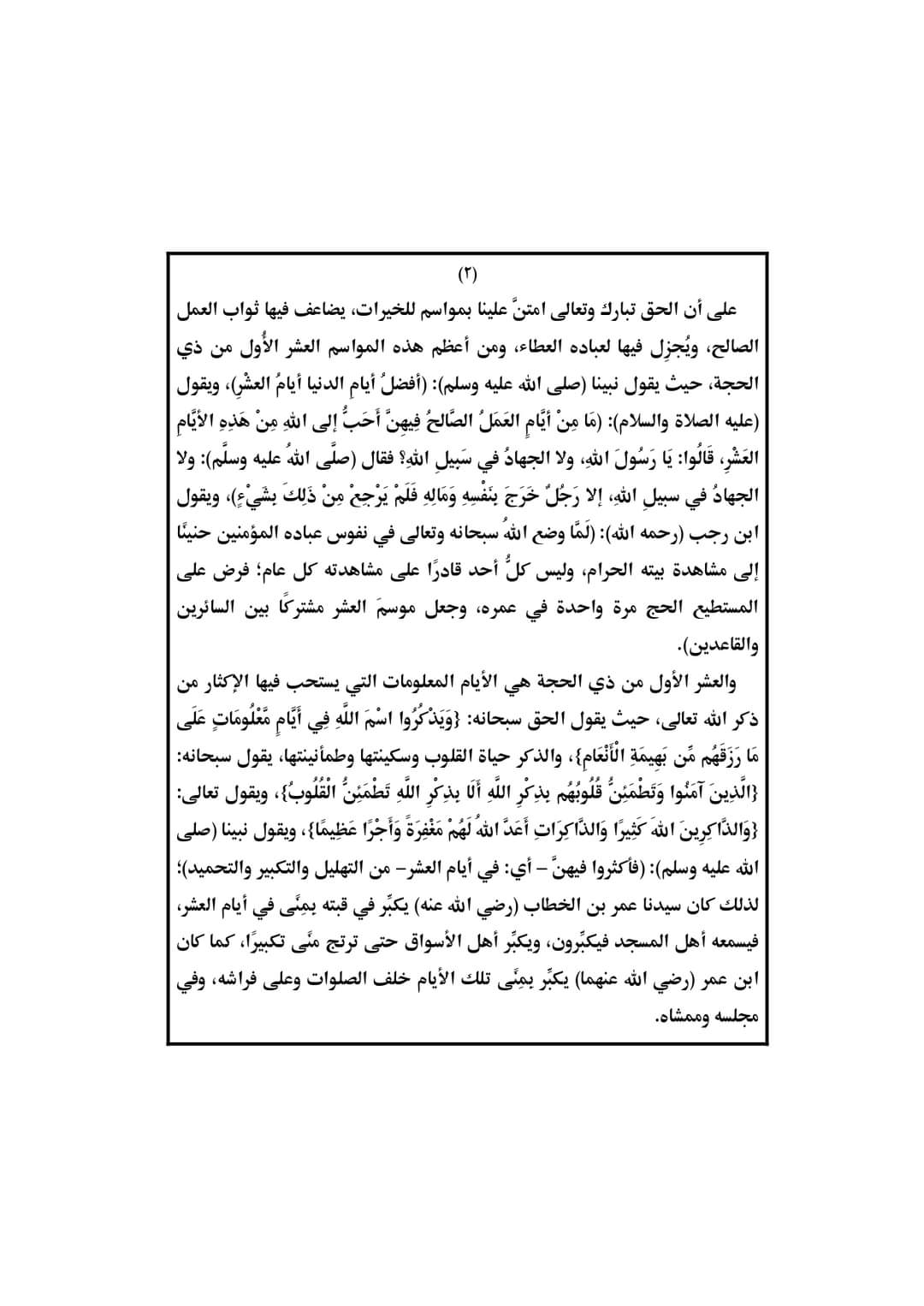 مفهوم العمل الصالح وفضائل العشر.. موضوع خطبة الجمعة المقبلة
