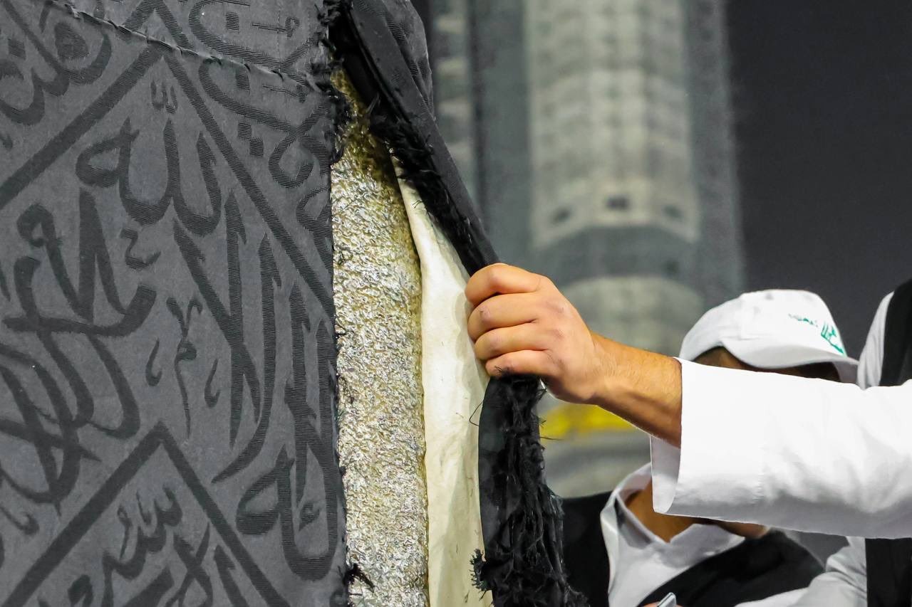 رفع الجزء السفلي من كسوة الكعبة المشرفة