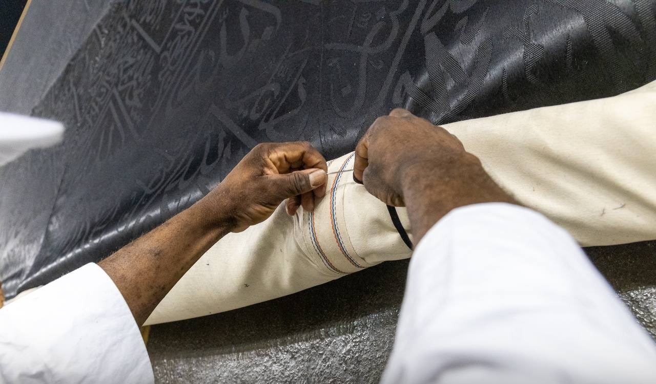وأردف: يتم رفع ثوب الكعبة المشرفة على 6 مراحل تبدأ من فك أسفل الثوب من جميع الجوانب وكذلك الأركان بارتفاع ثلاثة أمتار ومن ثم فك الحبل السفلي وإخراجه من الحلق ولف ثوب الكعبة المشرفة بارتفاع ثلاثة أمتار وموازاته على ارتفاع واحد وتثبيته من جميع الجوانب وفك ثلاثة من القناديل والعرق ثم تثبيت القماش الأبيض على جميع الجهات كلٌ على حدة وتركيب القناديل على القماش الأبيض وتغيير العرق وتثبيته إلى حد الخياطة وصولًا إلى المرحلة الأخيرة وهي لف الجزء السفلي من الستارة.