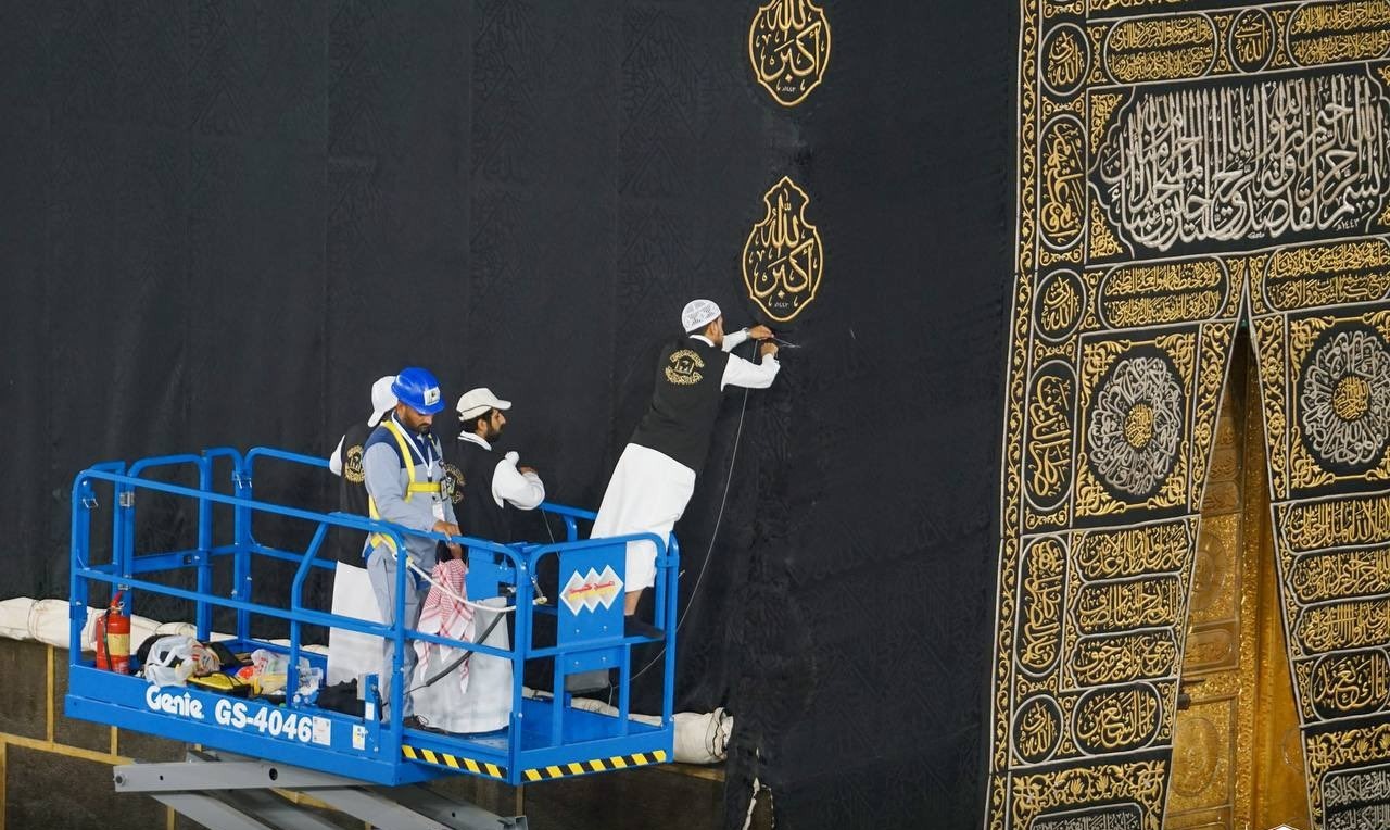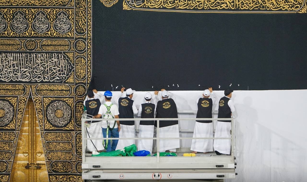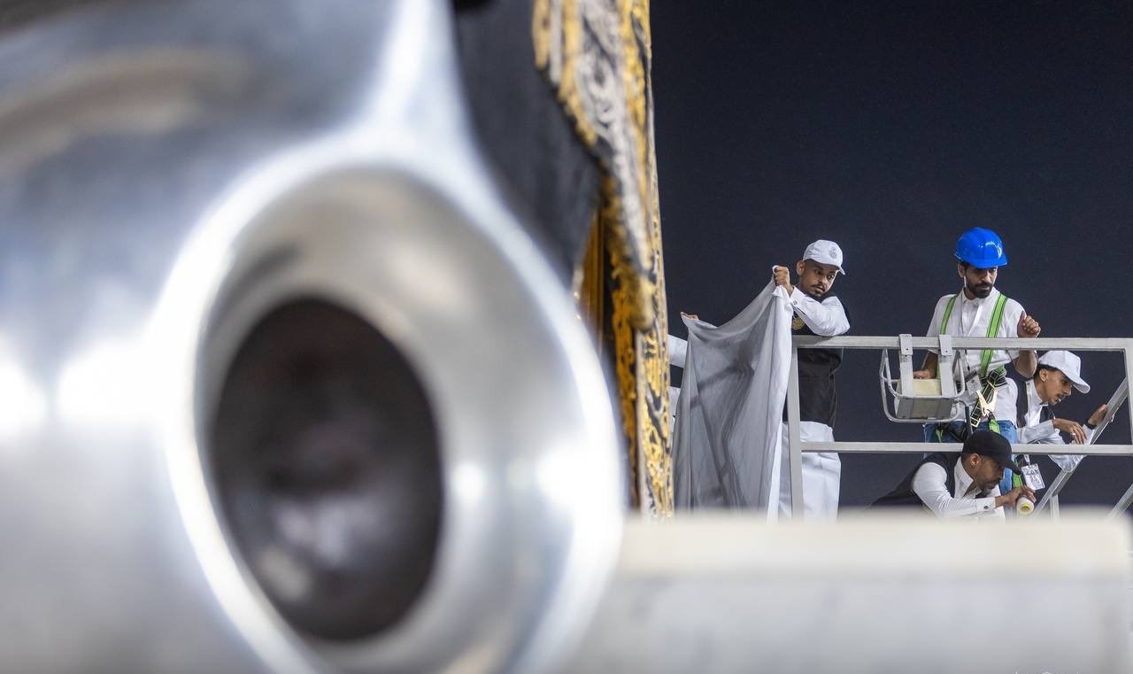 وكتبت الرئاسة عبر تويتر: مما جرت عليه العادة من كل عام، يرفع الجزء السفلي من كسوة الكعبة المشرفة بمقدار ثلاثة أمتار تقريبًا من سطح المطاف.