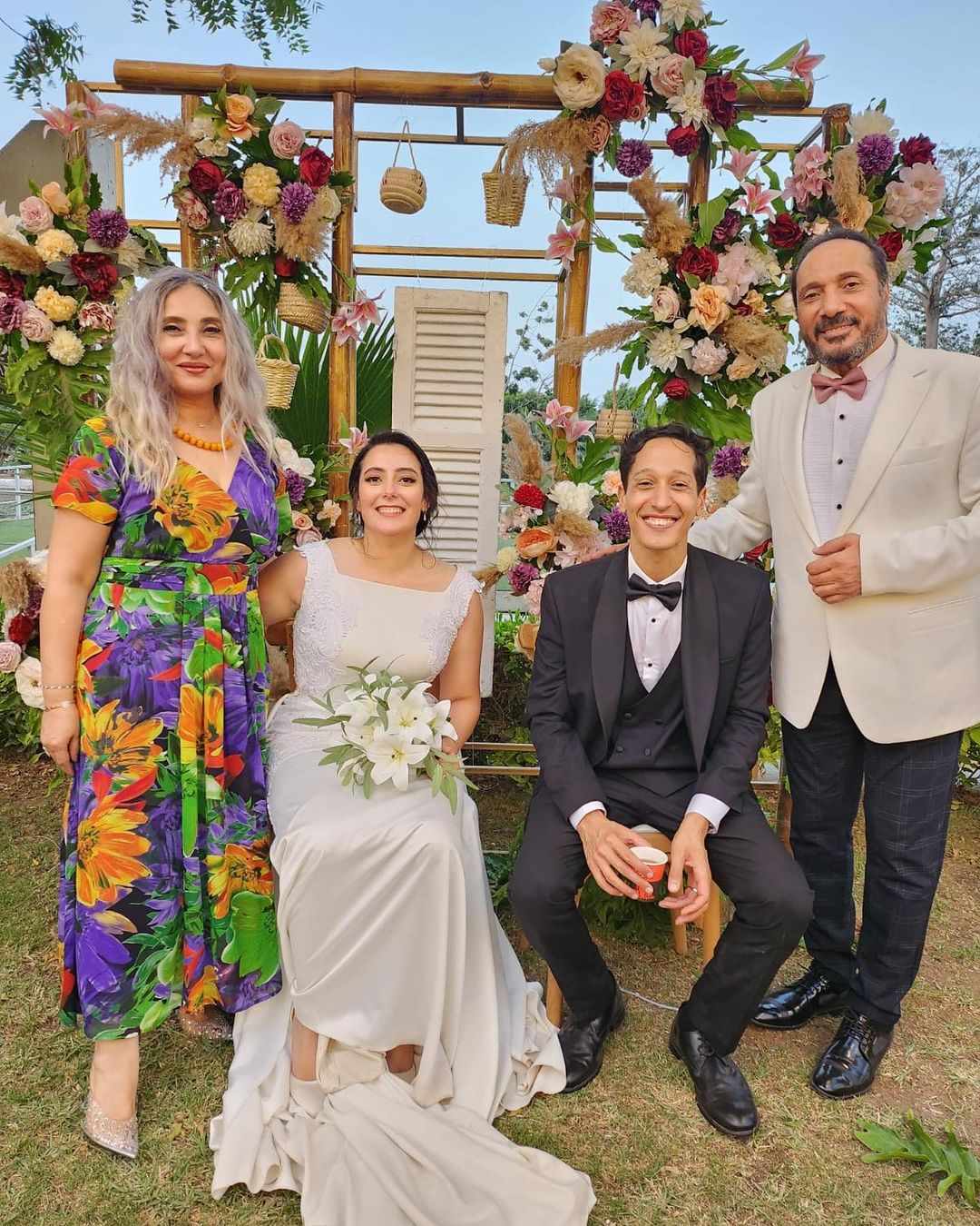 وحرص علي الحجار على ارتداء جاكيت بدلة أبيض اللون متناسقًا مع فستان العروس الأبيض البسيط، واعتلت الفرحة وجهه واتضحت في كل الصور التي نشرها عبر حسابه على إنستجرام.