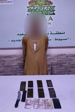 وفى مديرية أمن أسيوط ضبط أحد الأشخاص له معلومات جنائية حال استقلاله دراجة نارية بدائرة مركز شرطة الفتح، وبحوزته 15 طربة لمخدر الحشيش وزنت 1،500 كيلو جرام ومبلغ مالي وهاتف محمول وسلاح أبيض.