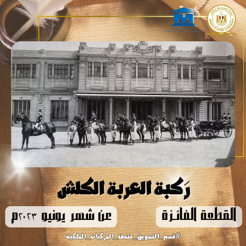 وأوضحت إدارة متحف المركبات الملكية، في بيان لها، أن رَكبة العربة الكلش، ترجع لعهد الملك فؤاد الأول (1917م - 1936 م) ويبدو بالصورة واجهة قاعة المناسبات الملكية.