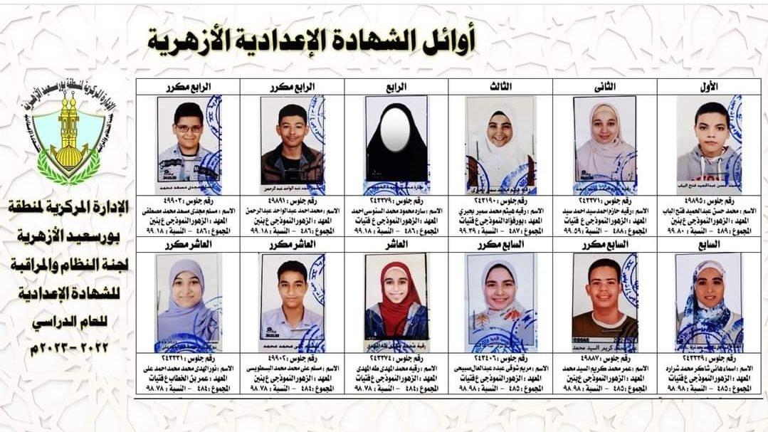ننشر أسماء الـ 10 الأوائل بالشهادة الإعدادية الأزهرية ببورسعيد