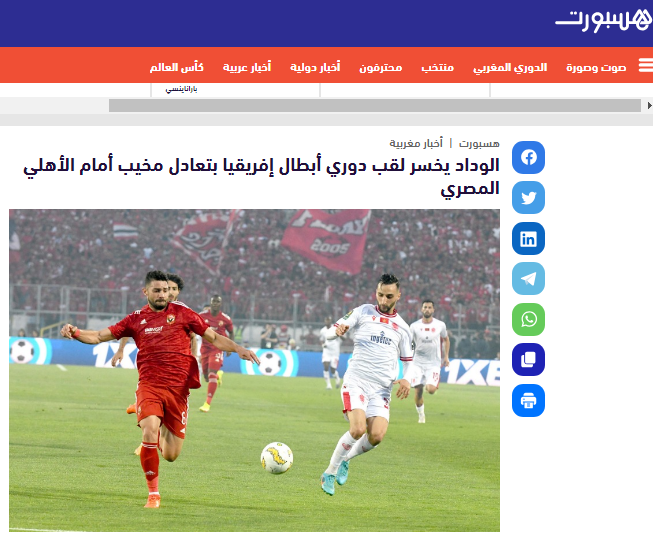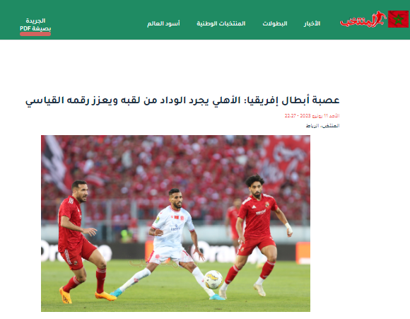 يستعرض القاهرة 24، ما تناولته الصحف المغربية بعد تتويج الأهلي بلقب دوري أبطال إفريقيا على حساب الوداد، وجاء كالتالي: -