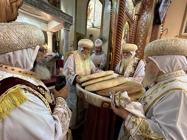 وصلى الأنبا باخوم مطران الإيبارشية القداس الإلهي، في كنيسة الشهيد مار جرجس بسوهاج -مقر المطرانية- بينما تولى خدمة القداس، الأنبا بسادة مطران إخميم وساقلتة بمشاركة صاحبي النيافة الأنبا أولوجيوس أسقف ورئيس دير القديس الأنبا شنودة رئيس المتوحدين بسوهاج، والأنبا متاؤس أسقف ورئيس دير السيدة العذراء بجبل إخميم، ومجمع كهنة إيبارشية سوهاج والإيبارشيات المجاورة، وخورس الشمامسة، بينما امتلأت الكنيسة بشعب الإيبارشية.