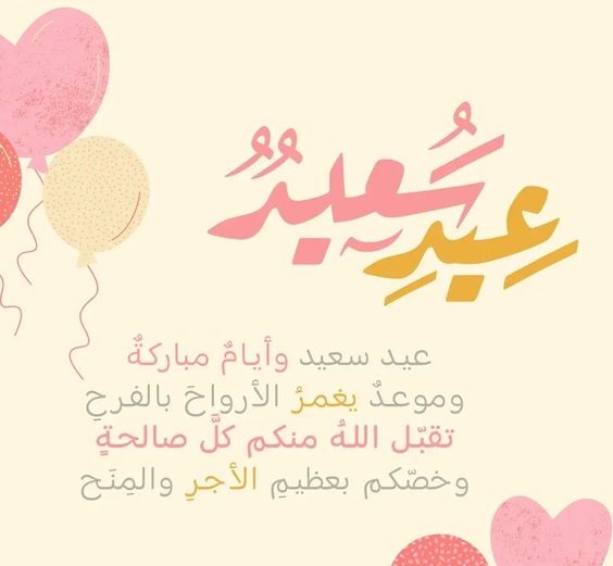 - بمناسبة عيد الأضحى المبارك، أتقدم إليكم بأسمى آيات التهاني والتمنيات، أعاده الله عليكم وعلى أحبائكم بالصحة والسعادة والازدهار، وجعل أيامكم مليئة بالبهجة والنجاح، عيد سعيد وكل عام وأنتم بخير.