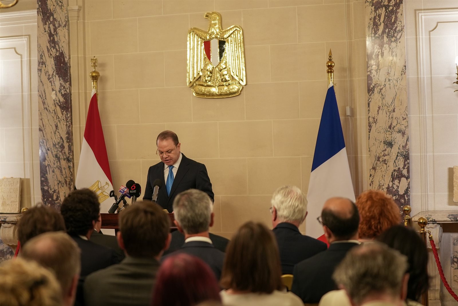 ألقى النائب العام المستشار حماده الصاوي، كلمة خلال حفل إجراءات استرداد الدولة المصرية لجداريتين أثريتين في إحدى القضايا الدولية الهامة لنهب وتهريب الآثار بالعاصمة الفرنسية.