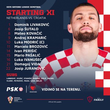 بينما جاء تشكيل كرواتيا ضد هولندا كالتالي: