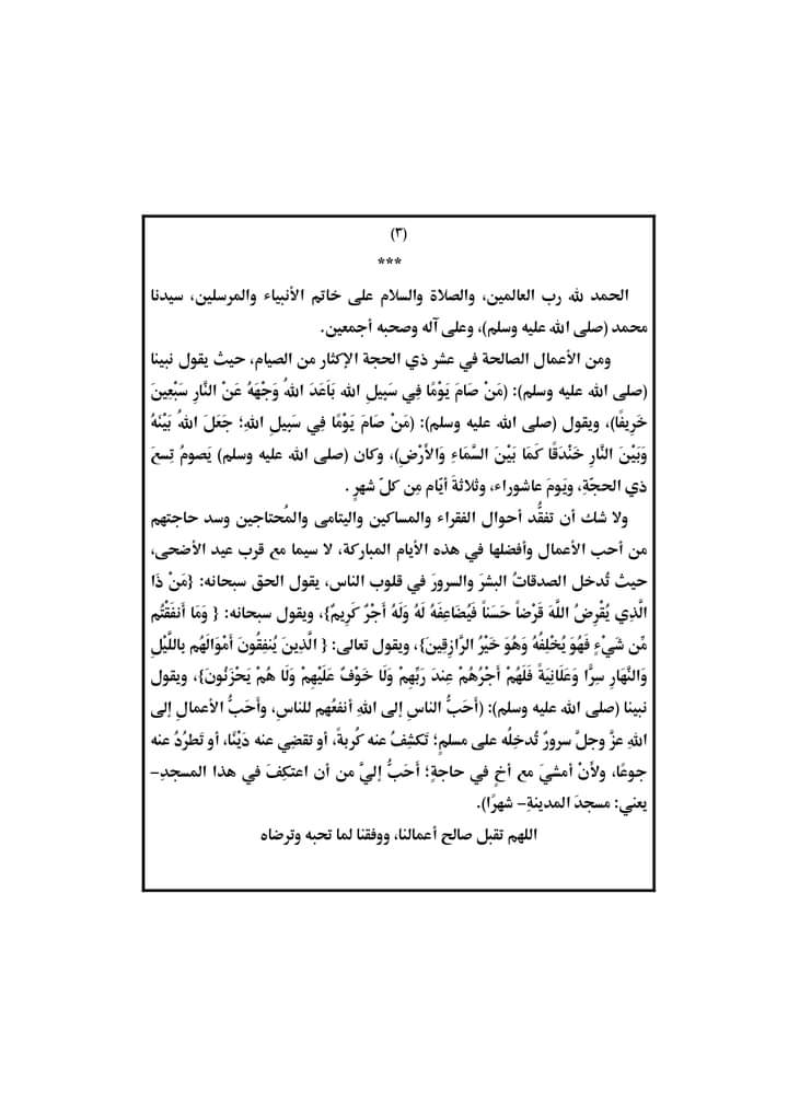 مفهوم العمل الصالح وفضائل العشر موضوعًا لـ خطبة الجمعة اليوم.. نص الخطبة