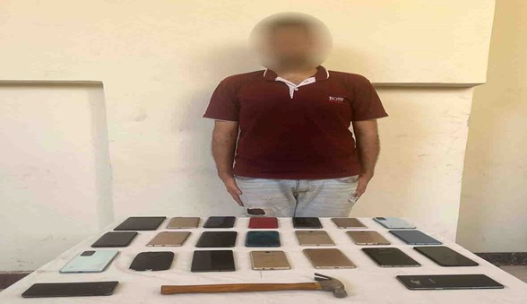 كما تم ضبط أحد الأشخاص، حال تواجده بدائرة قسم شرطة الموسكي، وبحوزته 23 هاتفا محمولا مختلفة الأنواع ومجهولة المصدر وشاكوش حديدي، وبمناقشته عن مصدر الهواتف أقر بسرقتها من داخل فاترينا خاصة ببيع الهواتف المحمولة كائنة بدائرة القسم بأسلوب كسر الزجاج باستخدام الأداة المضبوطة بحوزته، وأمكن التوصل للمجني عليه وتعرف على المتهم واتهمه بالسرقة.