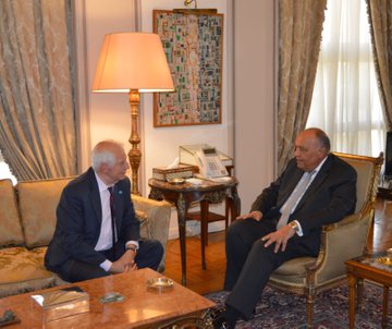 عُقد مساء اليوم الأحد، اجتماع ثنائي مغلق بين وزير الخارجية سامح شكري والممثل الأعلى للاتحاد الأوروبي للشئون الخارجية والسياسة الأمنية جوزيف بوريل، في إطار زيارته الحالية للقاهرة.
