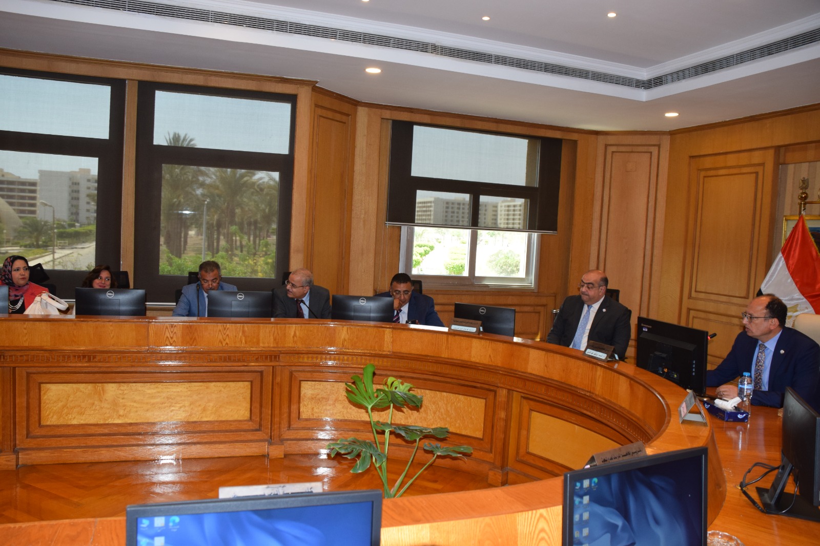 رئيس جامعة حلوان يجتمع مع عمداء الكليات لبحث آليات تنفيذ منظومة الكتاب الإلكتروني