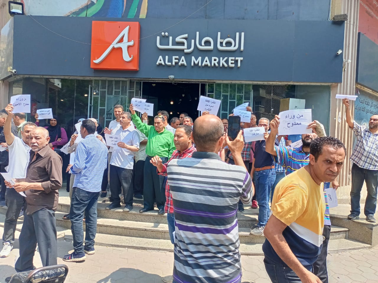 وقفة احتجاجية لعمال شركة متاجر ألفا ماركت ضد قرارات التسريح والتصفية | صور